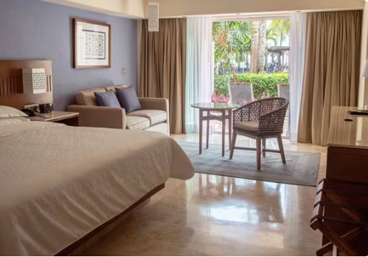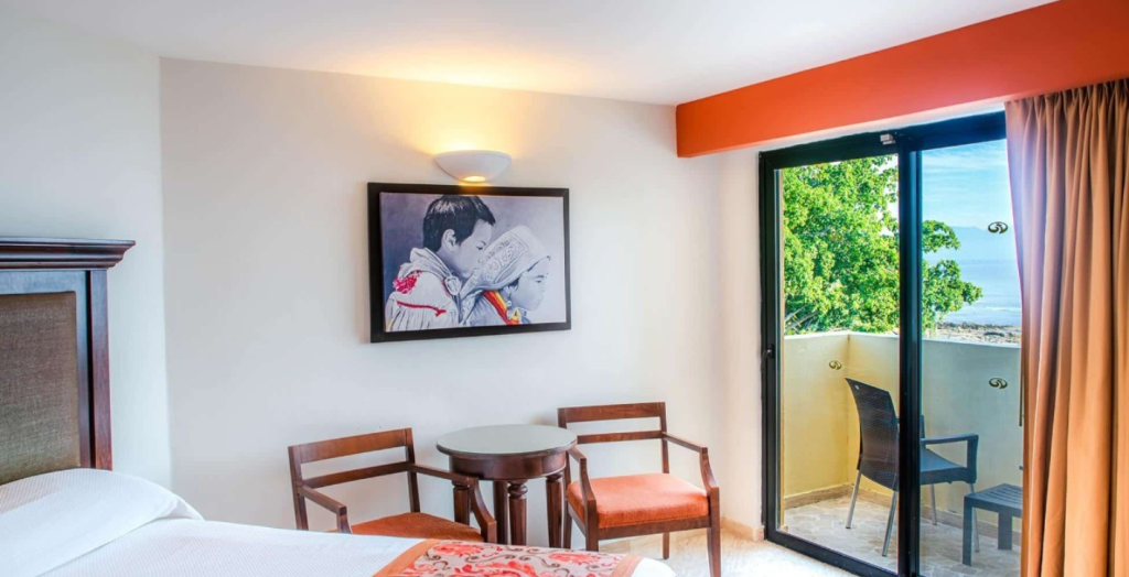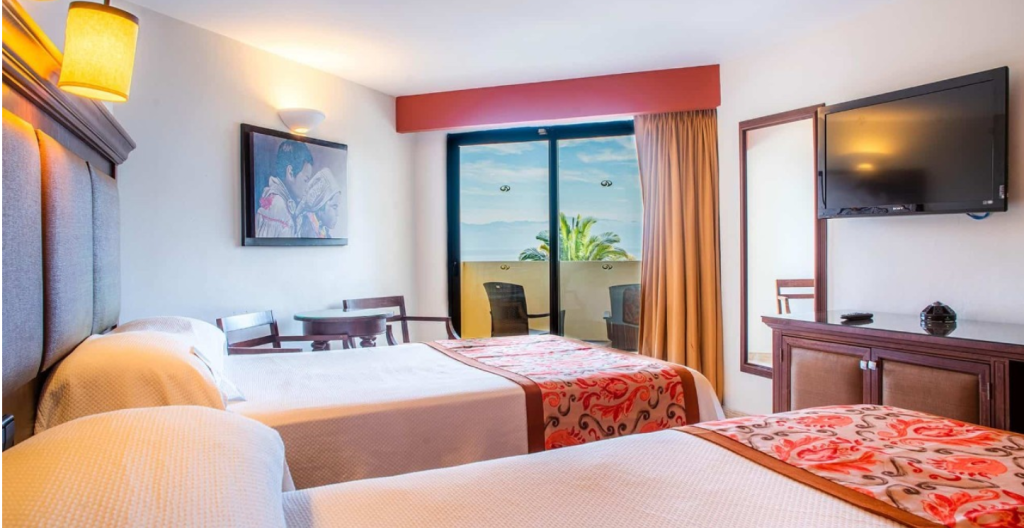 Deluxe Superior Suite – Ocean View. Overlooking the azure Bay of Banderas, this spacious suite features two queen-size beds, a full closet with safe, and a luxurious bathroom with premium amenities. Step onto your furnished terrace to take in the view, and enjoy the comfort and conveniences that make your stay feel like home.