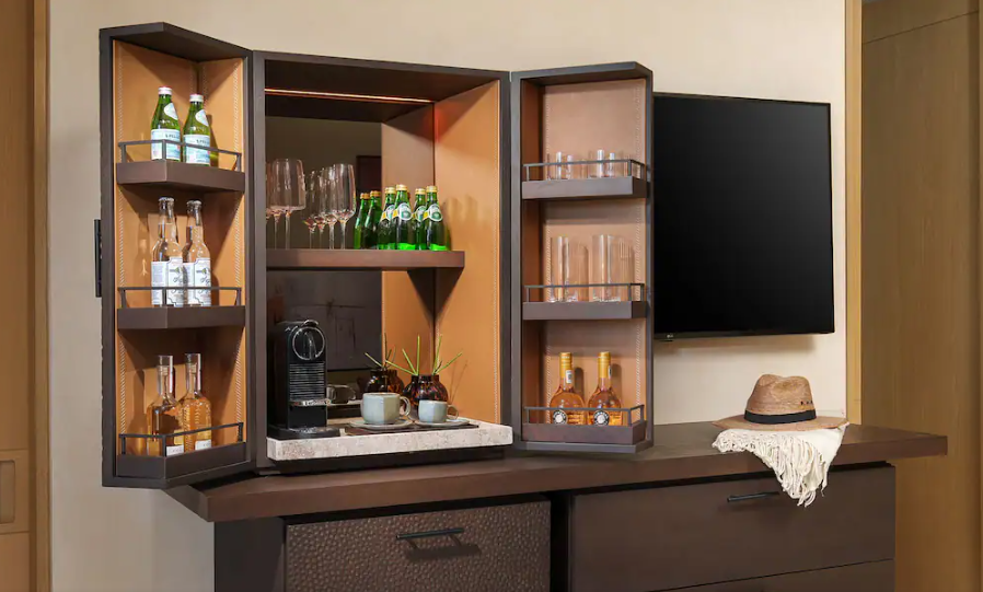 Essentials you’ve come to expect, like a minibar, tea and coffee maker, iron, in-room safe, hair dryer, blackout curtains and a crib upon request.